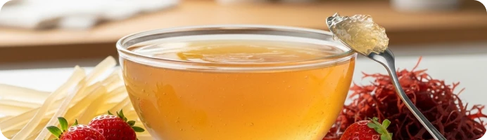 Gel natural que aumenta o volume da refeição sem adicionar calorias extras.